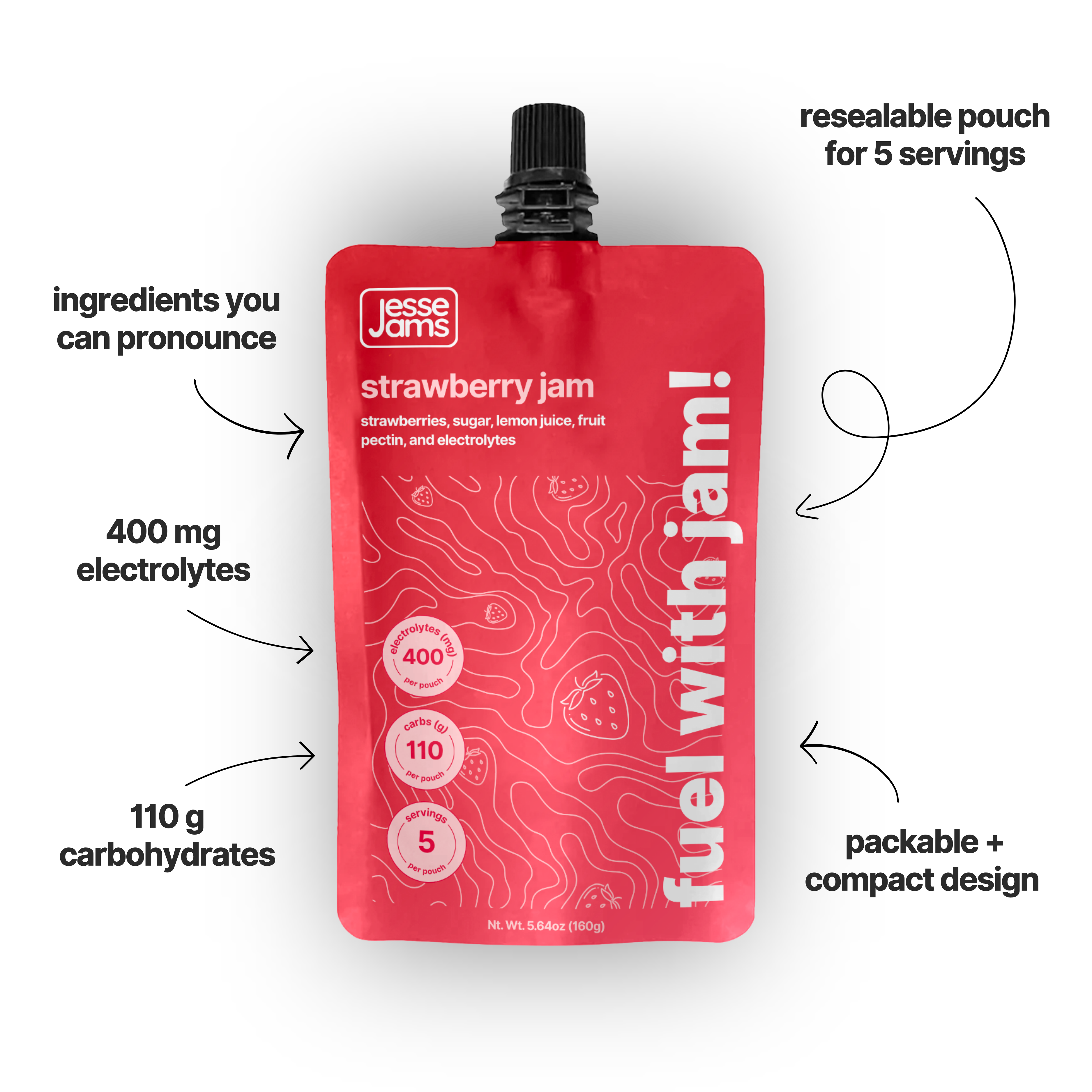 While our jam is handmade in small batches from real fruit and simple ingredients, behind that familiar flavor is a recipe tuned for peak performance. Packing more carbs per ounce than most gels, it goes down easy and still tastes homemade.