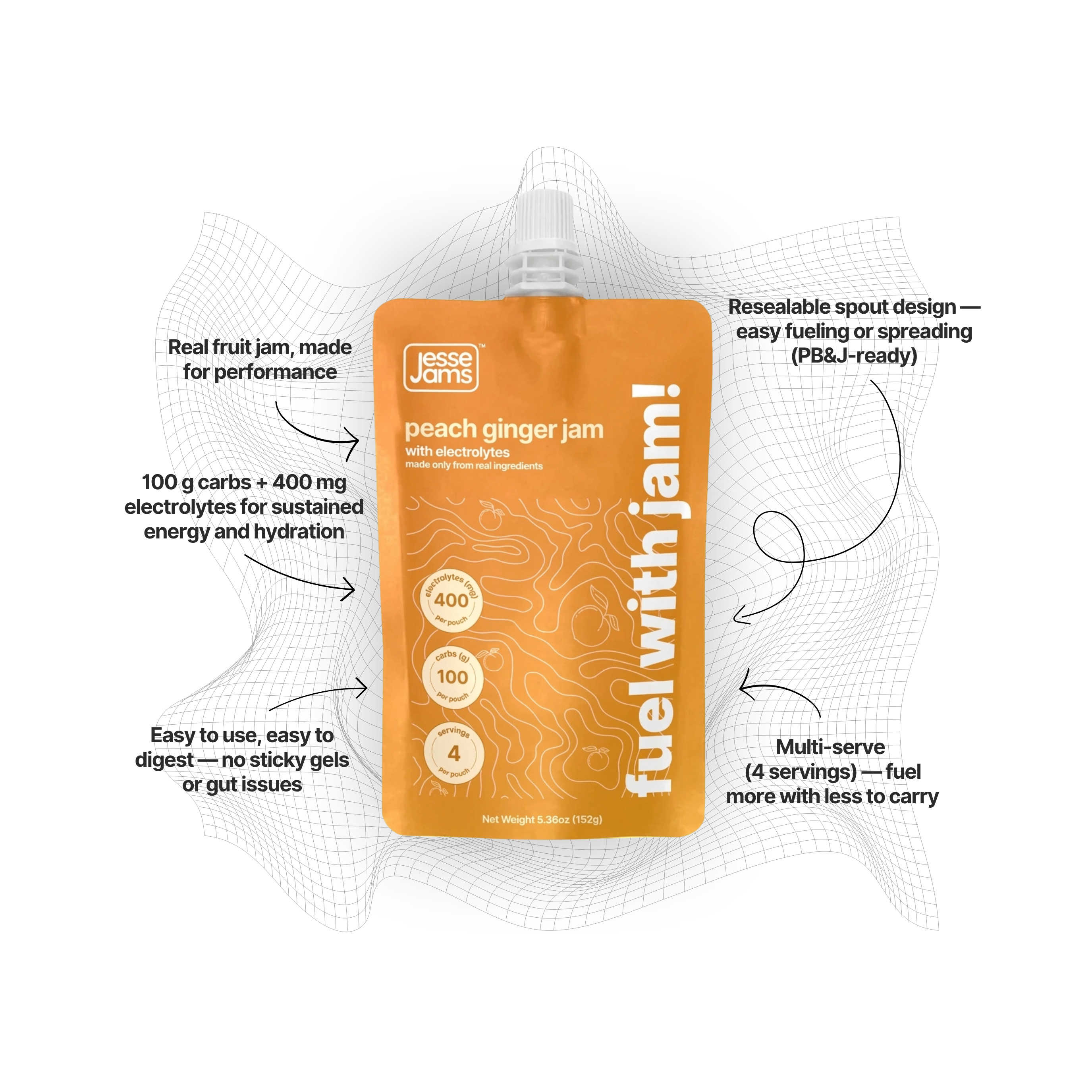 “I used to force down gels mid-run, but Jesse Jams is the first fuel I actually look forward to. I had no energy spikes, no GI upset, and the peach ginger is truly delicious — and that's compared to real food, not gross gels. I used two pouches on a 14-mile trail day.”